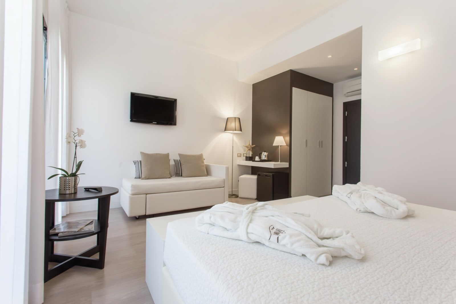 Gold12 – 15 m2 große Zimmer, schlicht und linear gehalten, aber mit jedem Komfort bedacht. Baby-Bedarfsartikel sind auf Anfrage erhältlich. Das Preis-Leistungs-Verhältnis dieser Zimmer ist ausgezeichnet. |