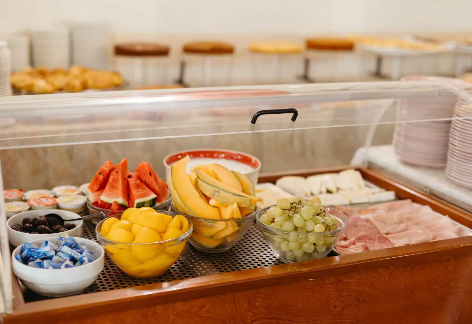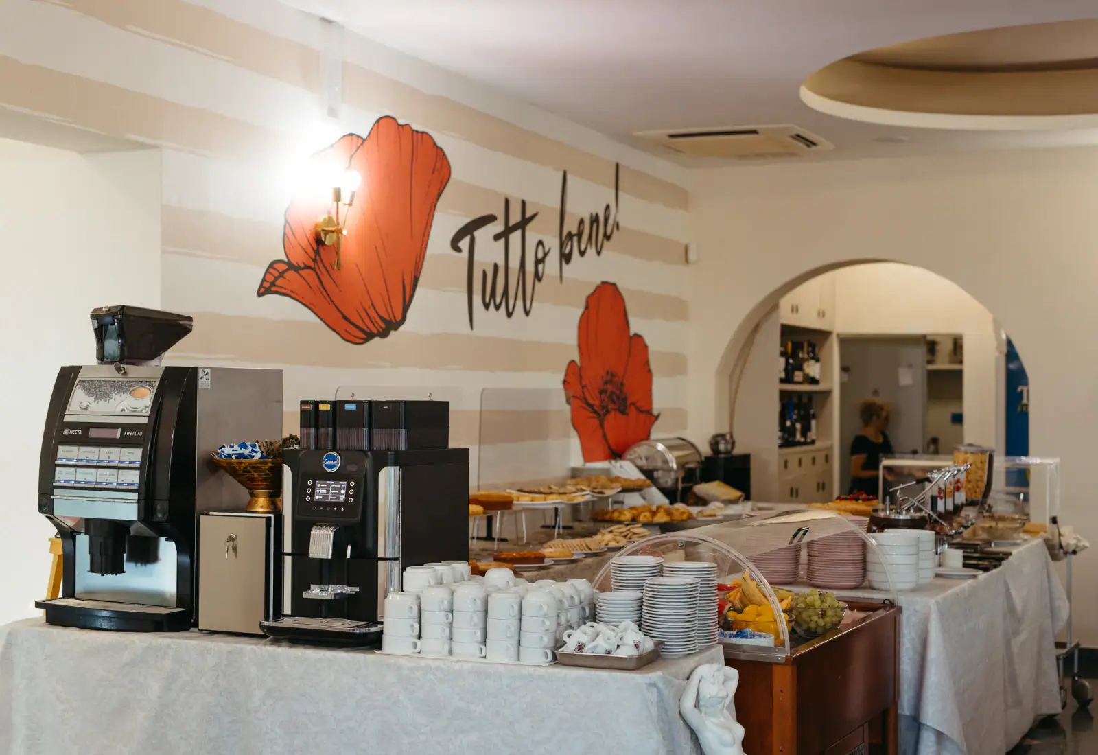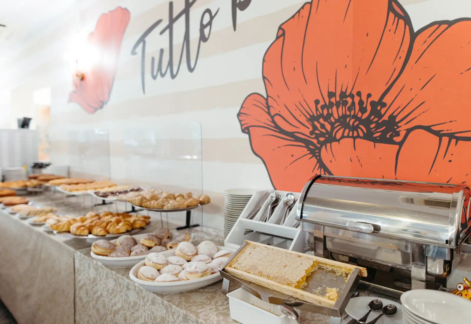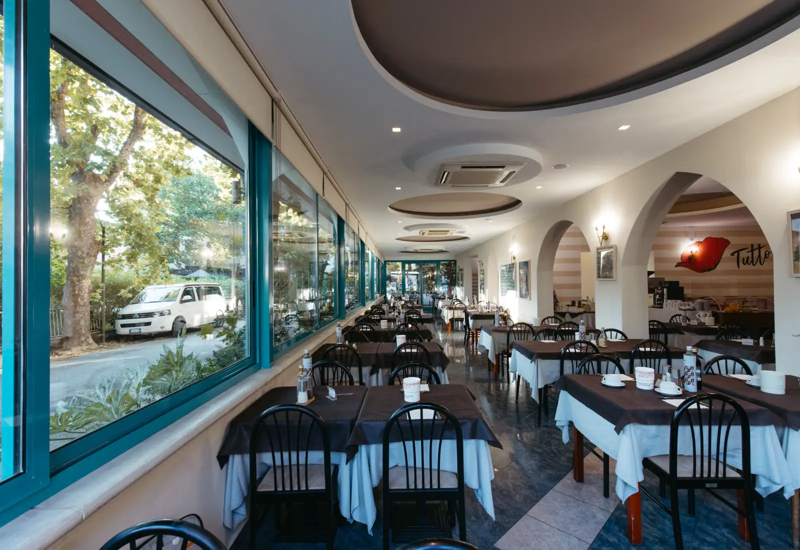 The day begins with an international breakfast which still includes the delicious dishes of Romagna, such as ciambella (doughnuts), cantarelle (traditional pancakes) and the succulent bombolone alla crema (cream doughnuts), king of the Riviera breakfast! Be it at lunch or dinner, you can choose from a lavish self-service buffet and our convenient table service. Every day an ample choice of traditional dishes, including the local Chef’s home-made pasta, is available. The wine labels are excellent too, coming from the local Cantina Nicolucci and from Cantina Bassi in Emilia, to accompany and compliment the dishes. Alternatives are available for those who have intolerances or are following diets. We have a baby menu to stimulate the palate of our smallest guests. |