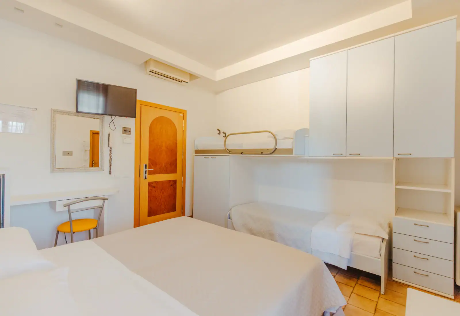 DoublesRenovated, soundproofed and elegant rooms, all with balconies, equipped with every comfort for a relaxing holiday. Baby services such as such as specialised baby cots, anti-fall bars, bottle warmers and changing tables are available on request. |